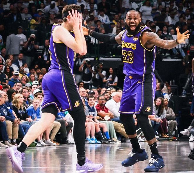 我要说的便是洛杉矶湖人队!过去这段时间,湖人队不算太平,艾顿怨声载道,老詹伤停,东契奇与未婚妻解除婚约甚至还因孩子抚养权问题闹上法庭。即便如此,湖人队还是7战6胜,悄悄凭借着一波3连胜将战绩改写为40胜25负,反超勇士队升至西部第4位,仅落后西部第3的火箭队(40胜24负)0.5个胜场。湖人队迎来保4争3的大好局面,东契奇延续得分王本色,场均32.4分+8.5篮板+7.4助攻+1.9抢断的输出算得上攻防一体,三项命中率达到51%、40%和81%也算得上高效。更关键的是,里夫斯也在老詹伤停之后重新找回了赛季初的那种巅峰状态,成为东契奇身边的好搭档。