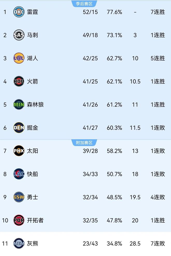 快船当前战绩为34胜33负排名西部第八,落后第六的掘金6.5个胜场,领先第11的灰熊10.5个胜场,尽管很难直通季后赛,可基本锁定了一个附加赛名额,无论伦纳德情况如何剩余赛程重中之重都乃守住该位置防止勇士开拓者反超。