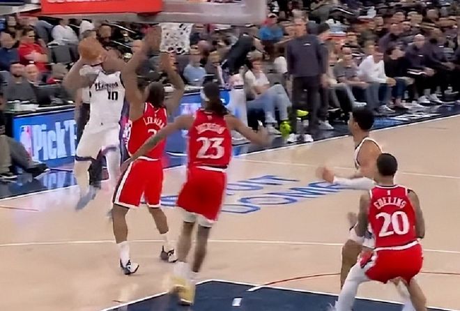 进攻回合对抗伦纳德,导致后者脚踝受伤直接退赛。