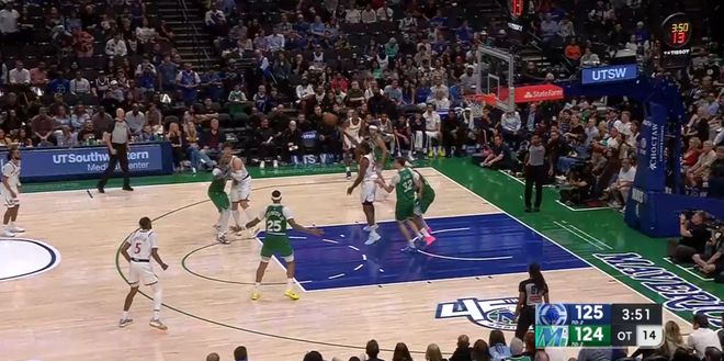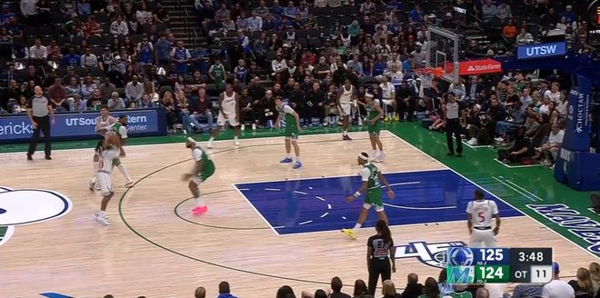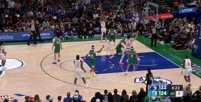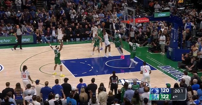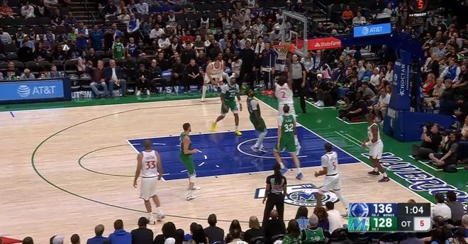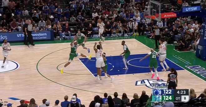 本场第四节剩下1分半前,快船还以120-116领先,结果之后1分钟被独行侠打了一波6-0,剩下24秒前,快船反而以120-122落后2分。
