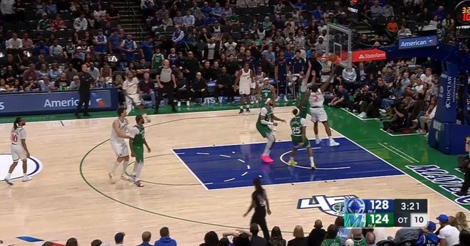 ——剩下1分钟前,伦纳德强吃马绍尔,过了独行侠几乎一整条防线,上篮杀死比赛