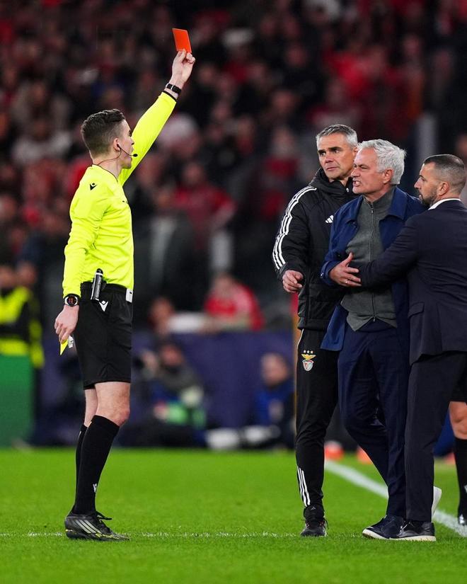 狂人穆里尼奥又被禁赛。在葡萄超第25轮,本菲卡对阵波尔图的国家德比中,双方战成了2-2平手,但比赛的高潮却出现在终场前的场边冲突,穆帅在比赛最后阶段与波尔图教练席爆发激烈争执,被主裁判直接出示红牌罚下。离开教练席之后,穆里尼奥的怒火并未平息。他又与波尔图助理教练卢乔-冈萨雷斯发生言语冲突,场面一度十分紧张。