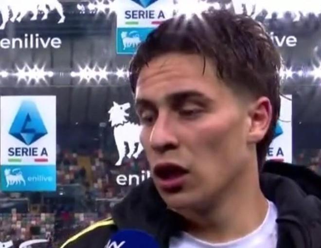 北京时间3月15日,在意甲第29轮的比赛中,尤文图斯客场1-0小胜乌迪内斯,排名暂时升至第四位,赛后助攻博加打进全场唯一进球并当选全场最佳球员的凯南-伊尔迪兹接受了意大利天空体育的采访。