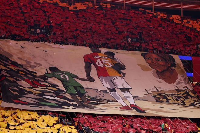 在首回合比赛中,加拉塔萨雷球迷在利物浦控球时不断发出嘘声,营造出极具敌意的氛围,这也是他们一贯以来的主场特点。赛前,现场还展示了以奥斯梅恩为主题的巨型看台拼图。